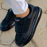Make a statement with the Alexander McQueen Oversized Sneaker. This all-black version of the iconic silhouette is a masterclass in modern luxury. The upper is crafted from a dynamic combination of premium materials, including breathable mesh for comfort and glossy patent leather panels that create a striking contrast. The shoe’s signature feature is its dramatic, sculpted rubber sole, which is not only oversized for a bold aesthetic but also has a high-shine finish that catches the light. The Alexander McQueen logo is subtly featured on the tongue, ensuring brand recognition without being overly ostentatious. This versatile sneaker is perfect for dressing up or down, making it an essential addition to any contemporary wardrobe.