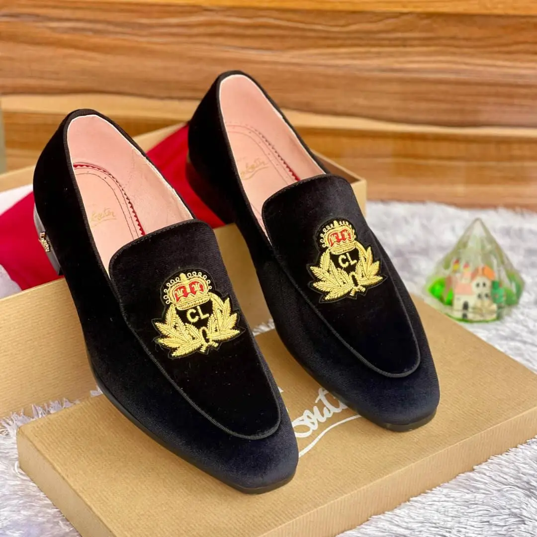 CL Black Velvet Loafers