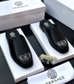 Step into a world of timeless luxury with the Versace Medusa ’95 Loafer. Crafted from premium black leather, these loafers are a testament to Italian craftsmanship and impeccable design. The shoe’s most defining feature is the prominent gold-tone Medusa ’95 plaque, an iconic symbol of Versace’s heritage and a bold statement of confidence. The sleek profile and clean lines of the loafer are complemented by a robust sole, ensuring both comfort and durability. This is more than just a shoe; it’s a piece of fashion history that effortlessly elevates any outfit, from tailored suits to smart-casual looks. The Medusa ’95 Loafer is a definitive choice for the modern man who values both heritage and a distinctive style.