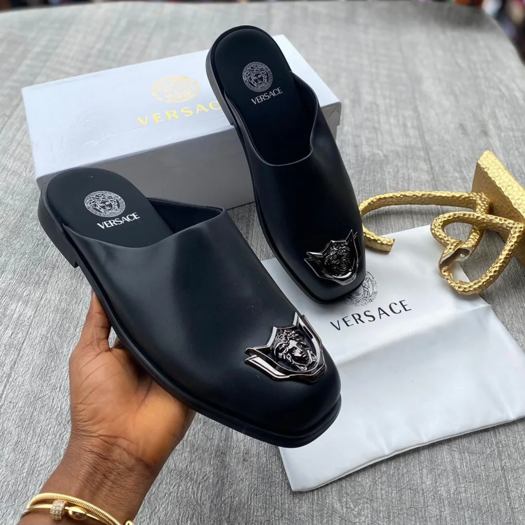 A symbol of power and style. The iconic Medusa ’95 loafer from Versace features the legendary Medusa head hardware on a classic black leather silhouette. It’s the perfect blend of timeless elegance and bold Italian luxury.
