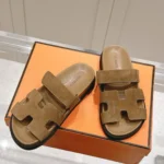 Step into the world of Italian luxury with these exquisite Versace Medusa Biggie Sandals. Crafted from supple brown leather, these slides feature a comfortable, wide strap that is impeccably adorned with the brand’s iconic Medusa Biggie emblem in gleaming gold-toned hardware. The prominent buckle serves as the centerpiece, instantly elevating the shoe from a simple slide to a powerful fashion statement. With a molded foot bed and a durable sole, these sandals are designed for both all-day comfort and effortless style. Whether you’re at a resort or exploring the city, these Versace sandals are the perfect accessory to add a touch of unapologetic glamour and brand prestige to any ensemble.