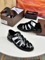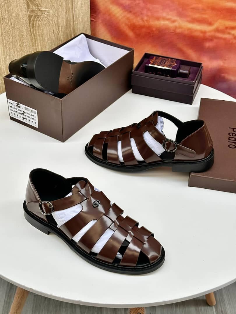 Elevate your leisure wardrobe with the Pedro Polished Leather Fisherman Sandals. Blending the structure of a formal shoe with the breezy comfort of a sandal, these feature premium high-shine leather and a secure buckle strap. A timeless choice for the modern man who values both sophistication and ease.