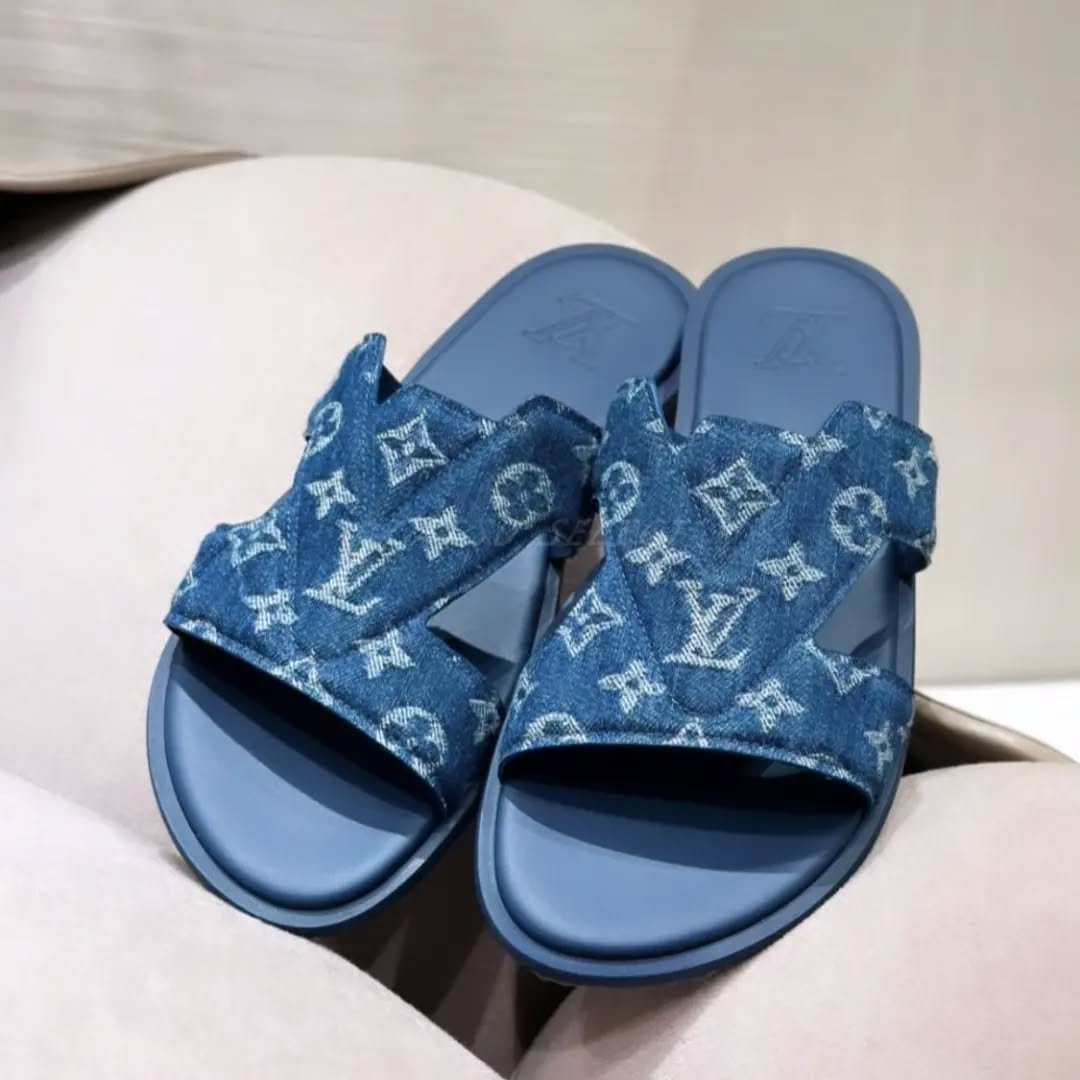 This elegant slide features a wide, criss-cross strap adorned with the classic Louis Vuitton Monogram pattern, a symbol of heritage and luxury. Designed for both style and comfort, the sandal includes a smooth, cushioned footbed and a durable sole, ensuring a comfortable stride.