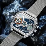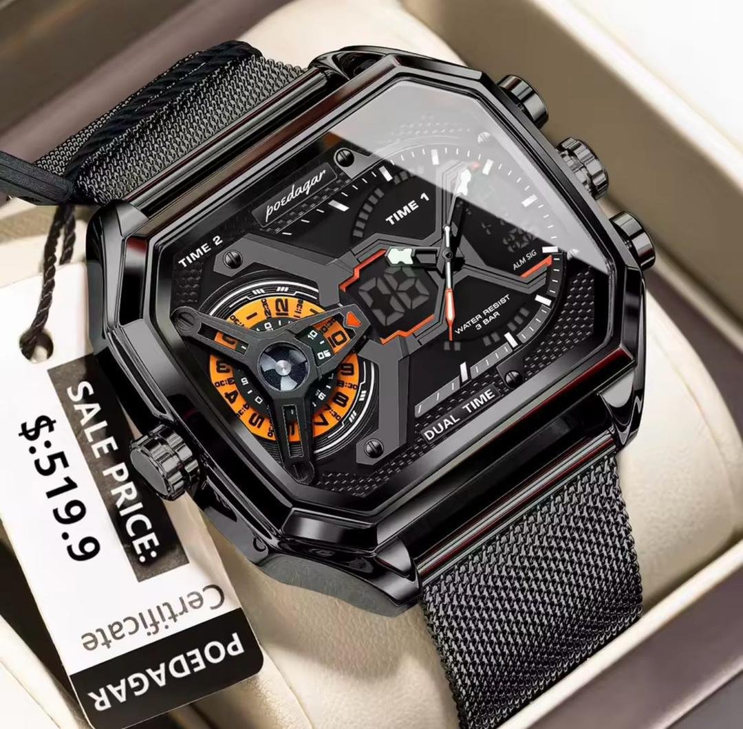 This timepiece is a perfect fusion of rugged sophistication and high-tech aesthetics, built for the modern man who values both form and function. With its unique multi-faceted case and striking black and gold color scheme, this watch is a statement piece that stands out from the crowd.1