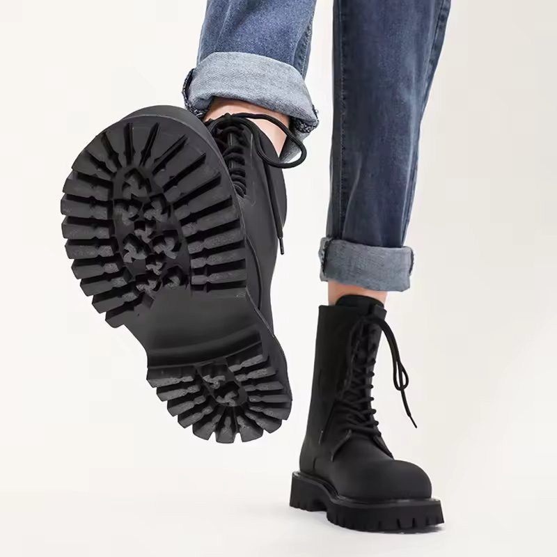 Be the first to review “Stylish Black Motorcycle Boots, Lace-Up Platform Design” Cancel reply